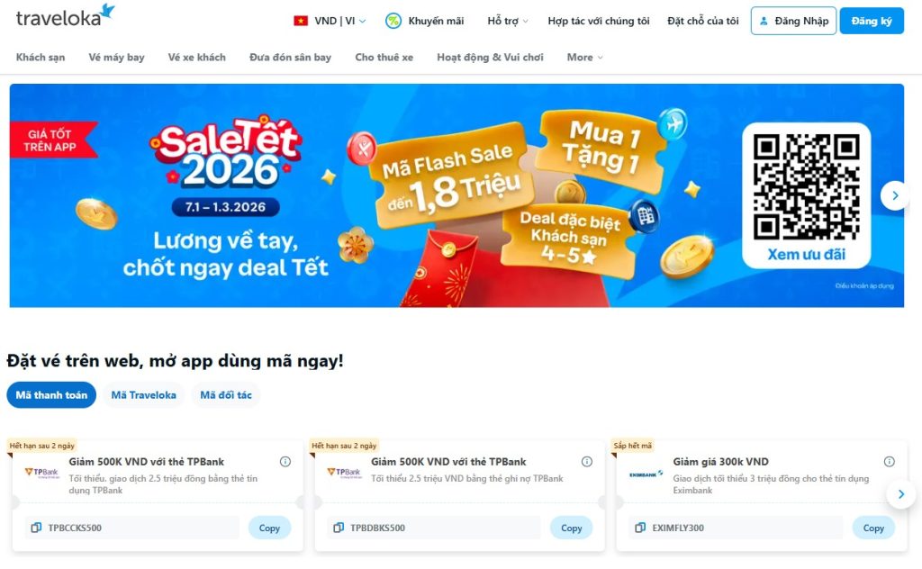 Bên cạnh dịch vụ vé máy bay, nền tảng này còn tích hợp nhiều tiện ích hỗ trợ khác như đặt phòng khách sạn, lựa chọn combo du lịch và các dịch vụ đi kèm, góp phần tối ưu trải nghiệm cho người dùng trong quá trình lên kế hoạch cho chuyến đi. Việc tập trung vào trải nghiệm và sự tiện lợi giúp Traveloka trở thành lựa chọn quen thuộc của nhiều khách hàng tại Việt Nam và khu vực Đông Nam Á.